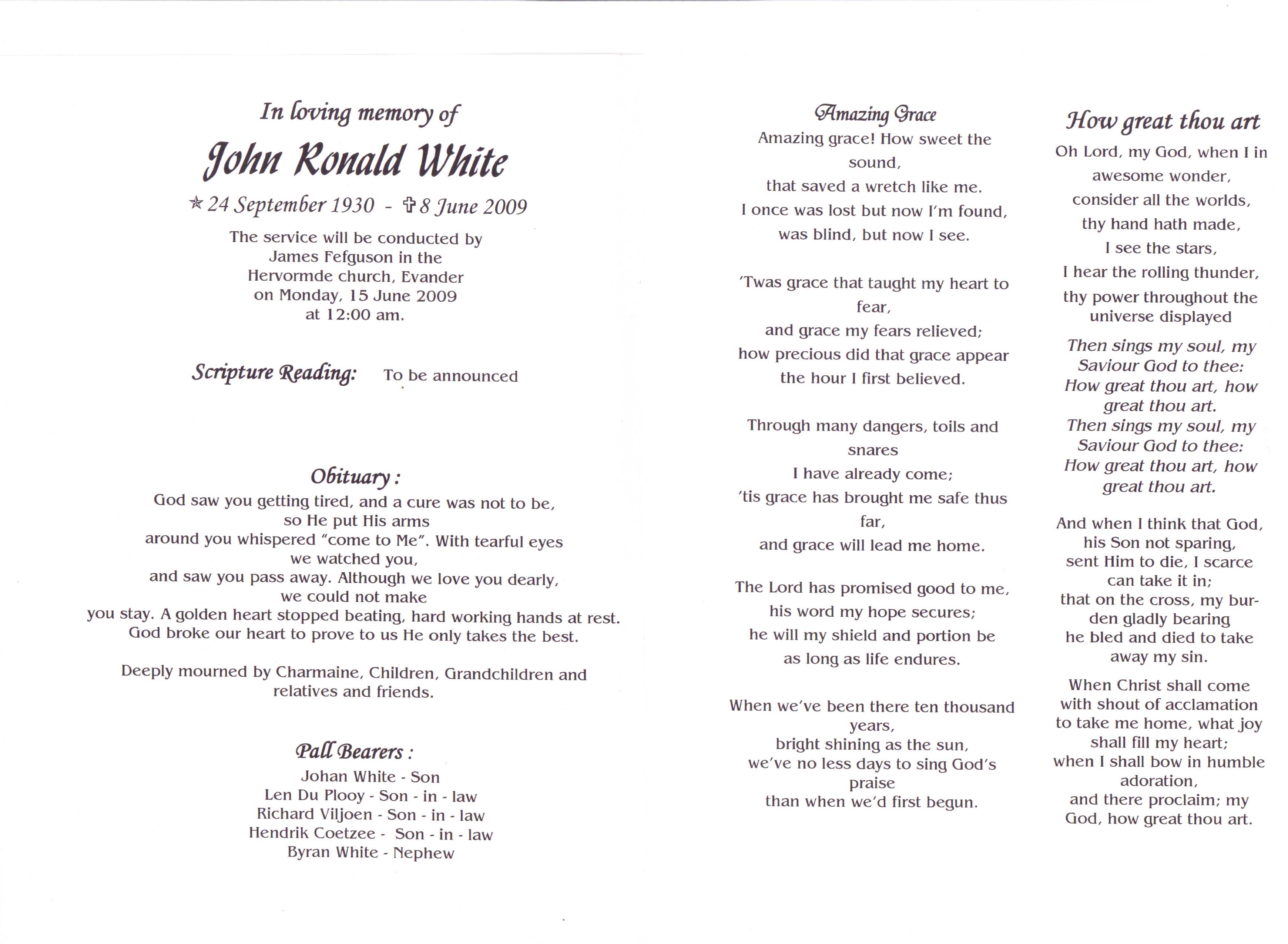 Funeral Programs / Begrafnisbriewe