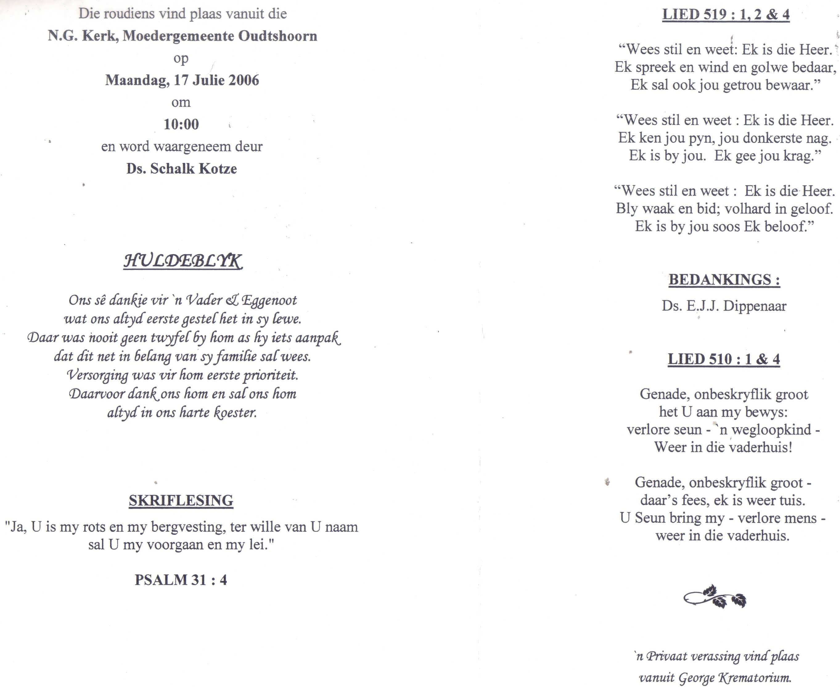 Funeral Programs / Begrafnisbriewe