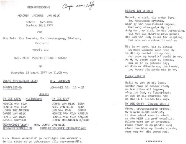 Funeral Programs / Begrafnisbriewe