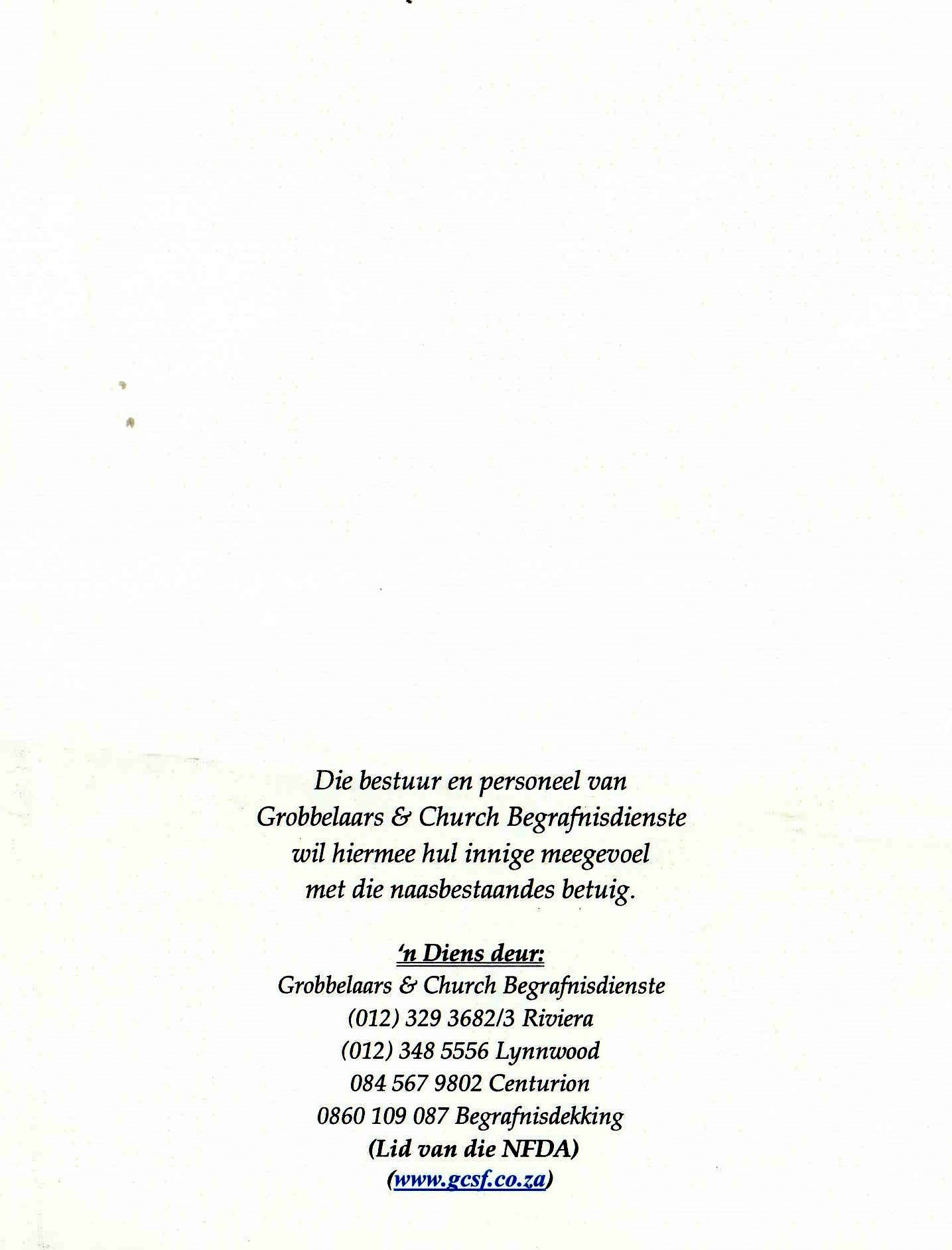 Funeral Programs / Begrafnisbriewe