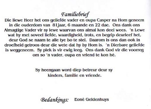 Funeral Programs / Begrafnisbriewe
