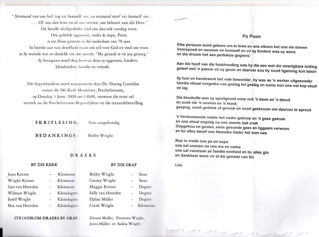 Funeral Programs / Begrafnisbriewe