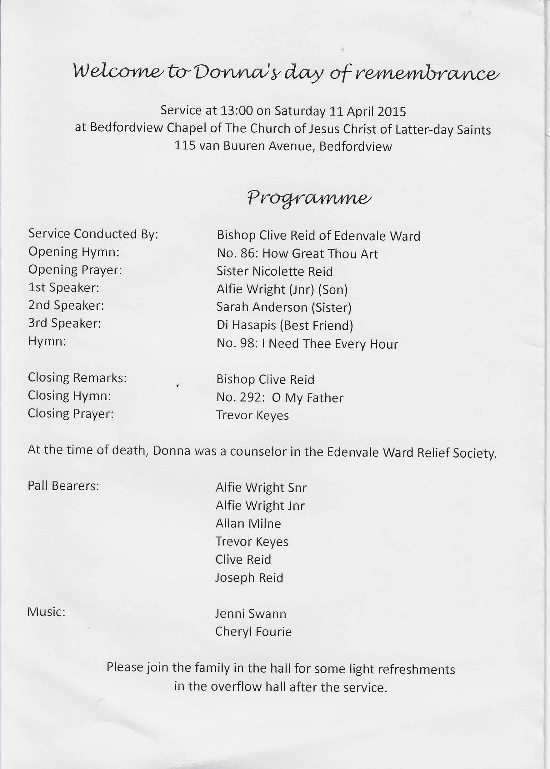 Funeral Programs / Begrafnisbriewe