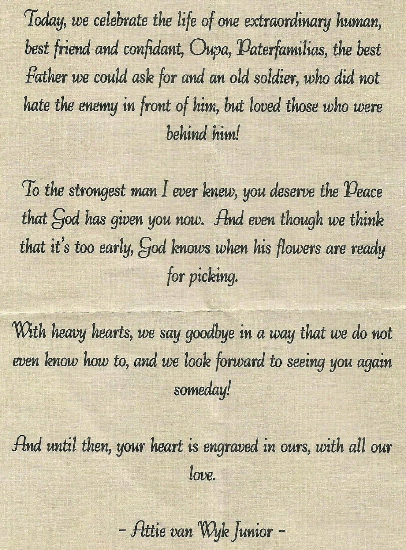 Funeral Programs / Begrafnisbriewe