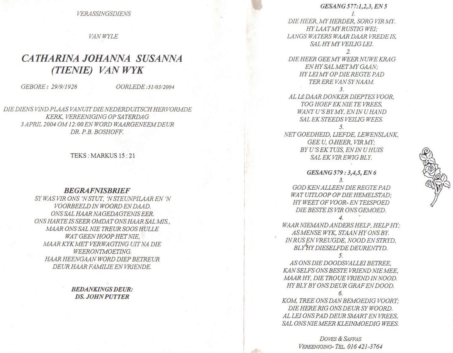 Funeral Programs / Begrafnisbriewe