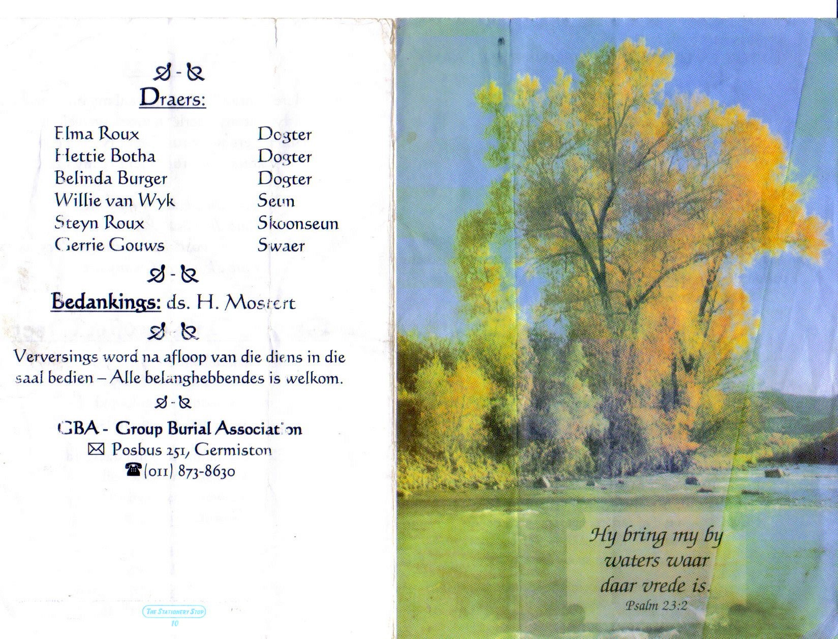 Funeral Programs / Begrafnisbriewe