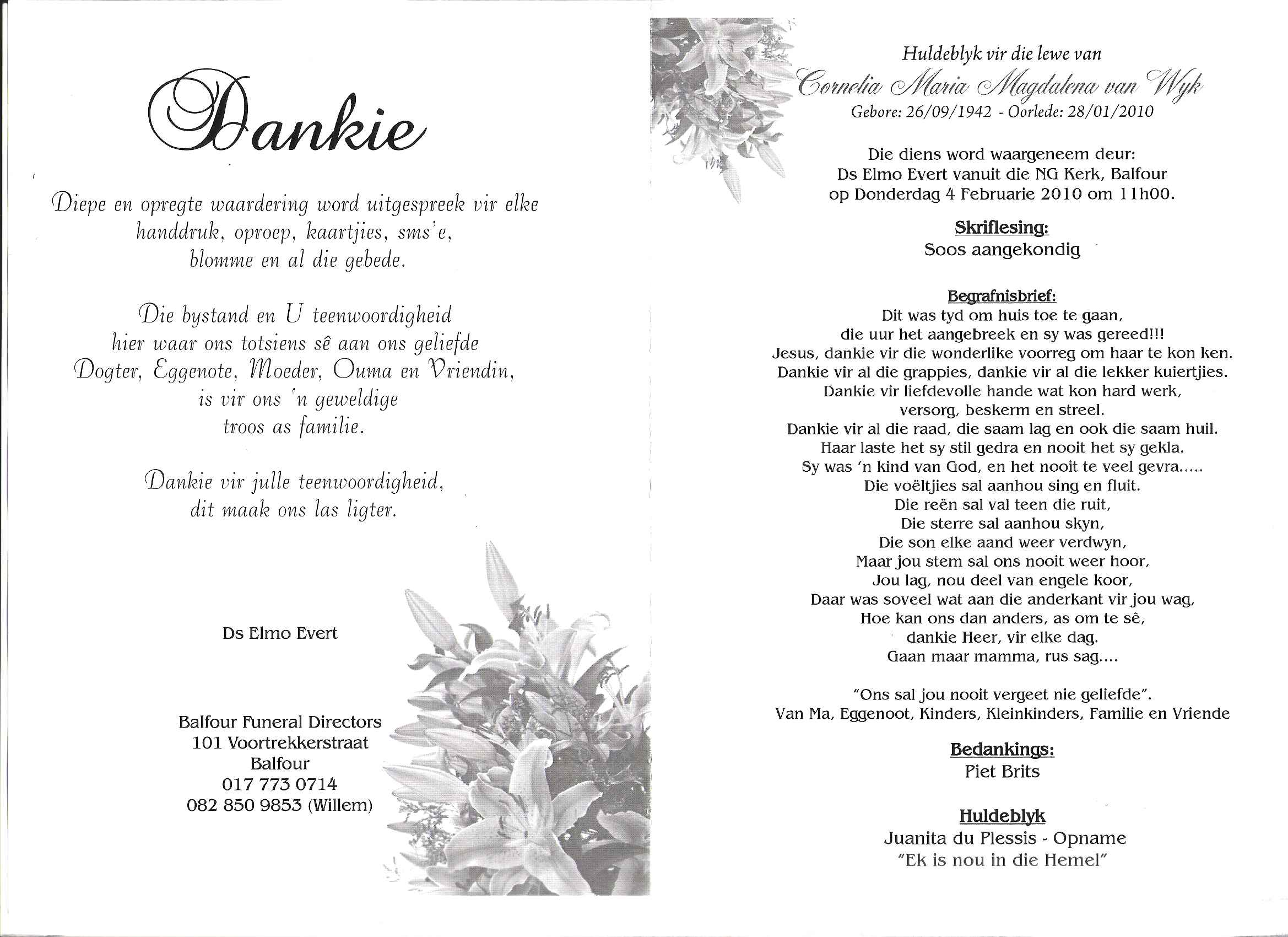 Funeral Programs / Begrafnisbriewe
