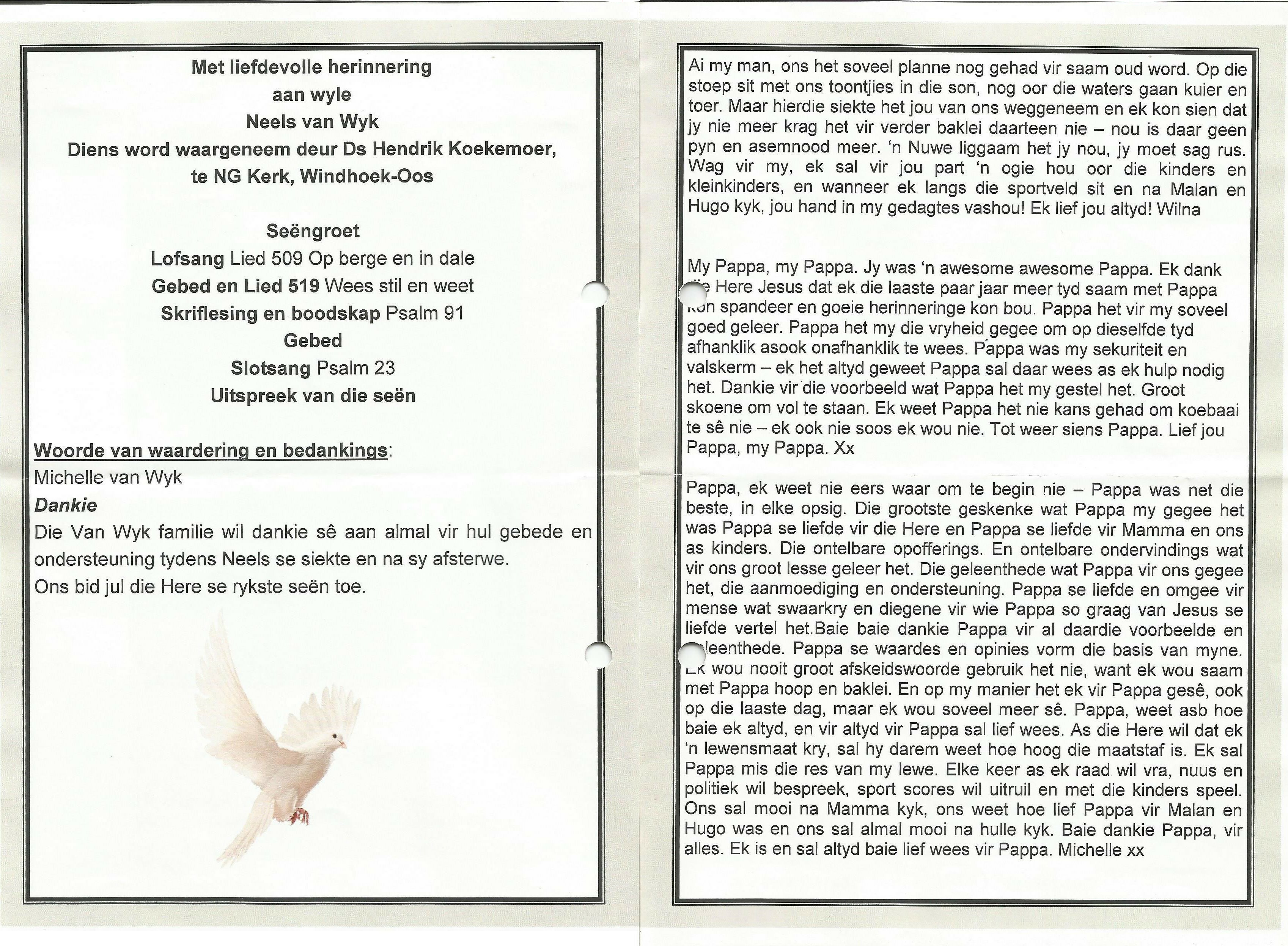 Funeral Programs / Begrafnisbriewe
