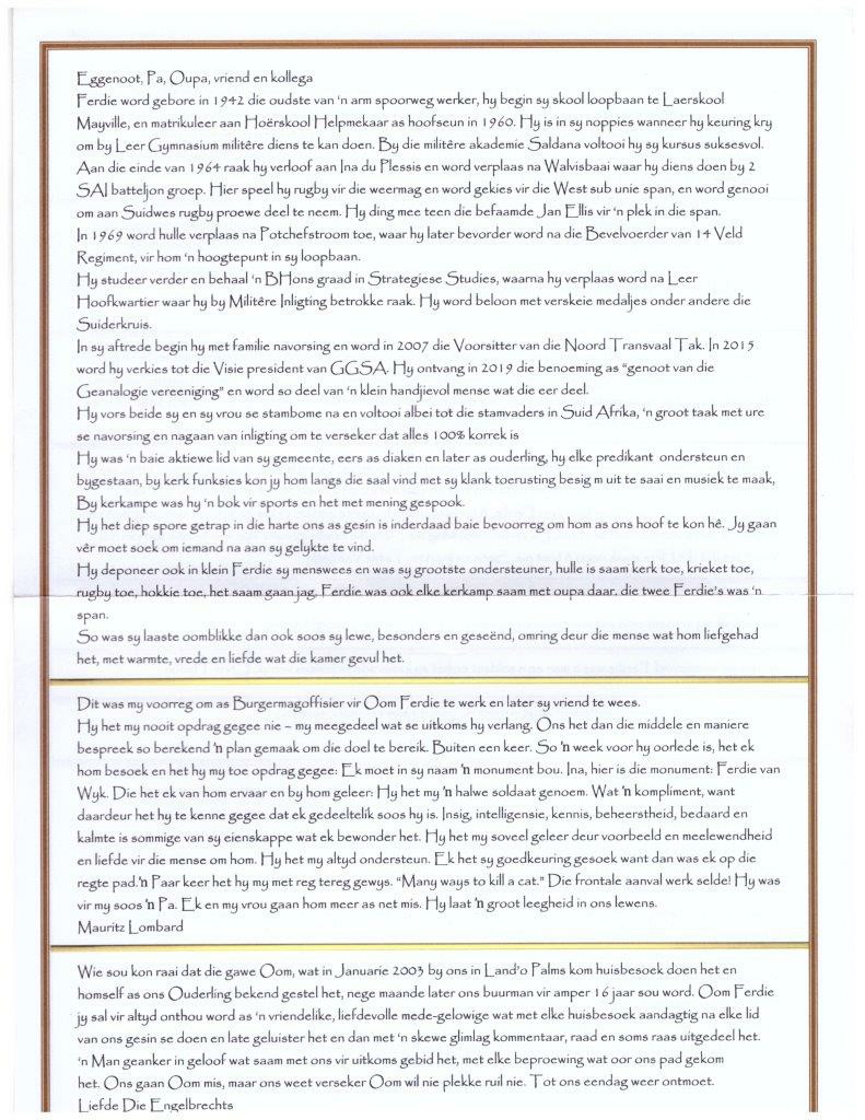 Funeral Programs / Begrafnisbriewe
