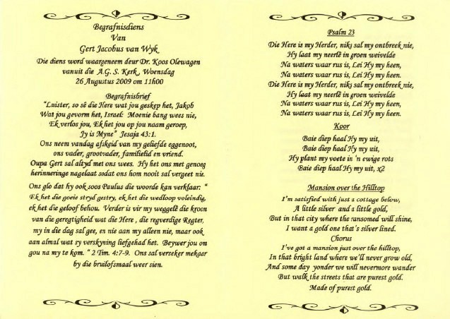 Funeral Programs / Begrafnisbriewe