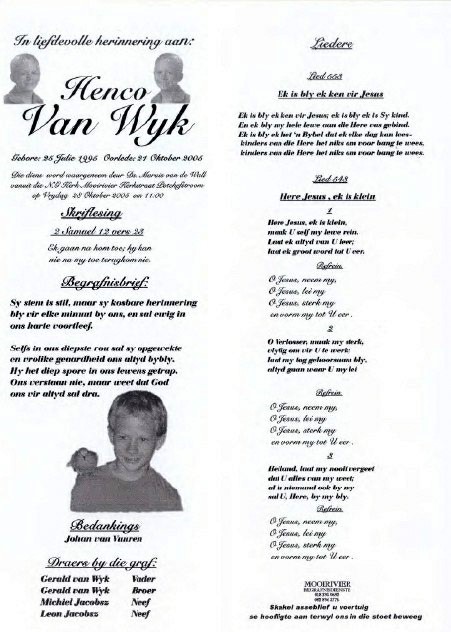 Funeral Programs / Begrafnisbriewe