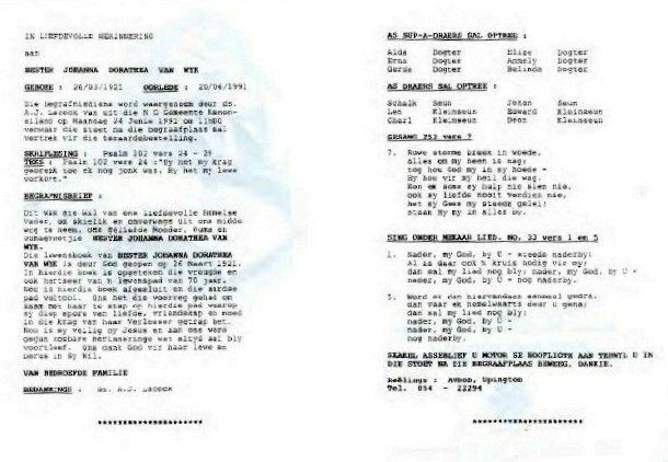Funeral Programs / Begrafnisbriewe