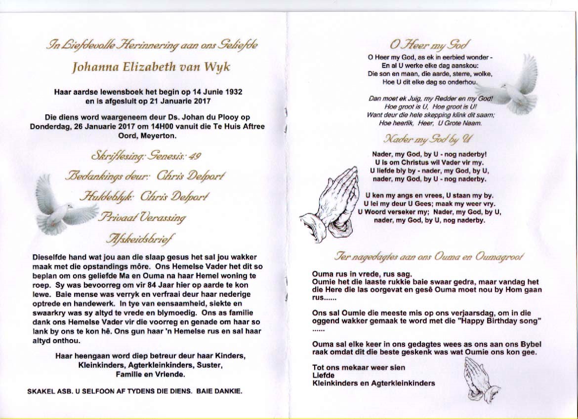 Funeral Programs / Begrafnisbriewe