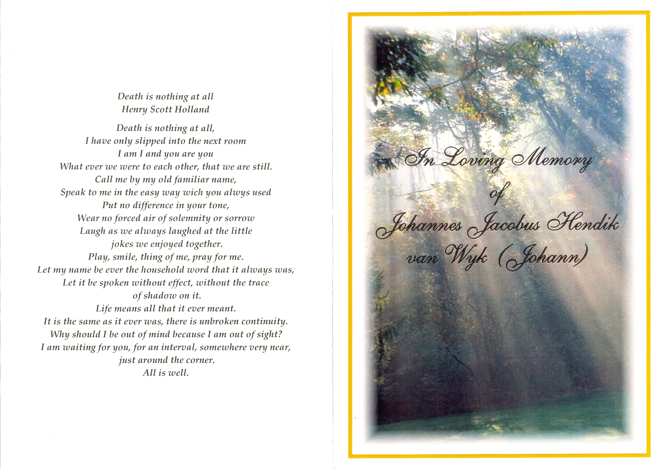 Funeral Programs / Begrafnisbriewe
