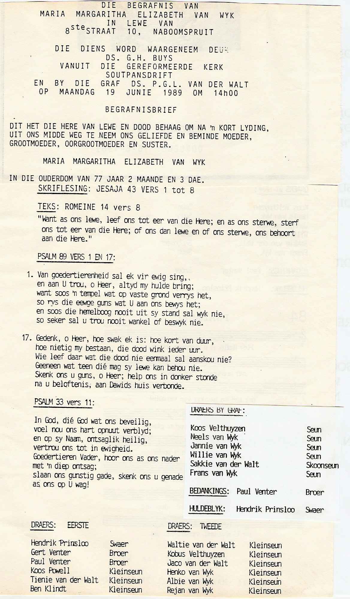 Funeral Programs / Begrafnisbriewe