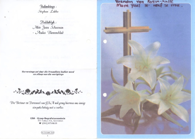 Funeral Programs / Begrafnisbriewe