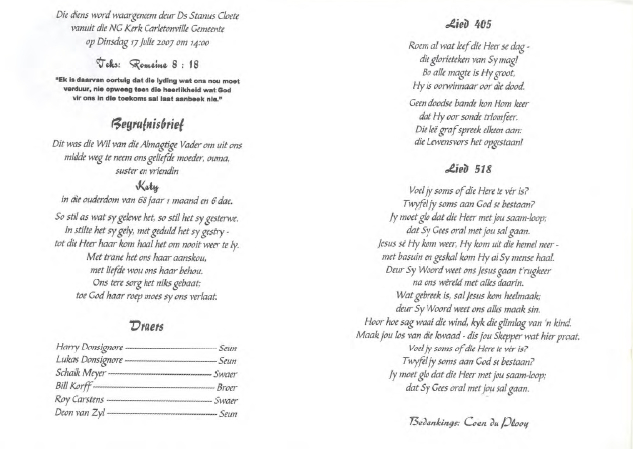 Funeral Programs / Begrafnisbriewe