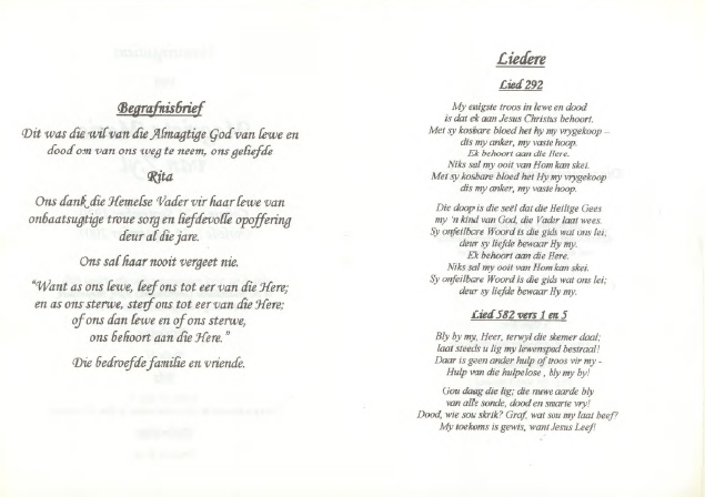 Funeral Programs / Begrafnisbriewe