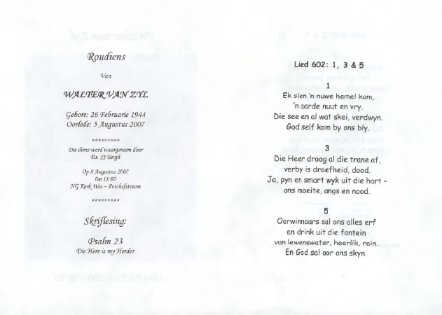 Funeral Programs / Begrafnisbriewe